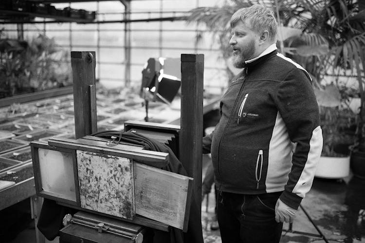 Das war Ende der 90er. Ich hatte mich damals ausschliesslich mit der Farbwirkung des Diafilms beschäftigt. Mein damaliger Agent, der legendäre Harry H. Lunn jun., erkannte, dass meine Arbeit in einer technischen und fremdbestimmten Sackgasse steckte. Harry Lunn verstand es, zu inspirieren, und zwar zu Netzwerken. Er brachte mir Bücher und organisierte Treffen mit Künstlern wie McDermott & McGough, die sich schon länger mit historischen Verfahren beschäftigten. Lunns unerwarteter Tod 1998 verhinderte meine Weiterentwicklung als Fotokünstler in New York. Ich kehrte zurück in die Schweiz und traf 2007 im Zürcher Café Odeon einen Fotografen, der am Nebentisch sein Portfolio präsentierte. Ich begann dorthin zu schielen, denn ich war damals schon Kurator der Zürcher Werkschau «photo». Natürlich erhielt ich Einblick in sein Portfolio, wenig später entstand von James Muñoz das im Buch publizierte Porträt. Doch dieser musste aus familiären Gründen bald nach Amerika zurückkehren. Erst 2010 fand ich dann eine Ausschreibung für einen Workshop. Das Geld für die erste Ausrüstung hatte ich von Freunden und Familie zusammengepumpt.