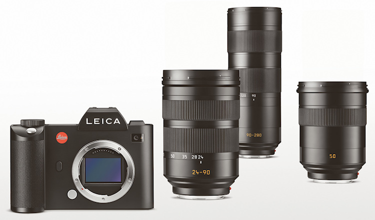 Zum neuen Leica SL-System werden zunächst drei systemeigenen Leica Objektive angeboten: Das Leica Vario-Elmarit-SL 1:2,8-4/24-90 mm ASPH. ist mit einem grossen Brennweitenbereich und hoher Lichtstärke das Standard-Vario-Objektiv, das Telezoom Leica APO-Vario-Elmarit-SL 1:2,8-4/90-280 mm und das besonders lichtstarke Leica Summilux-SL 1:1,4/50 mm ASPH.