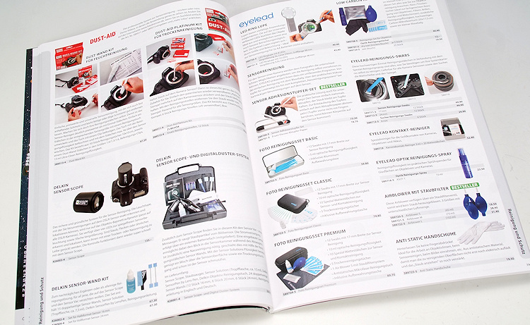 Zur Kamerapflege und Sensorreinigung enthält der B.I.G. Katalog ab Seite 38 ein breites Angebot an Hilfsmitteln von Dust-Aid, Delkin, Eyelead und der Hausmarke B.I.G. Solche Hilfsmittel sollte man immer in der Fototasche mit dabei haben, um auch unterwegs eine Verunreinigung auf dem Sensor beheben zu können.