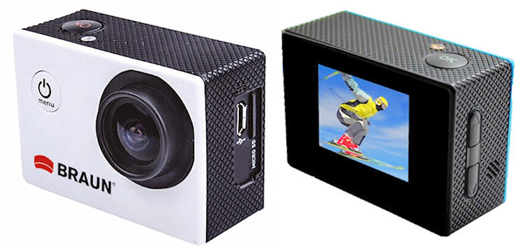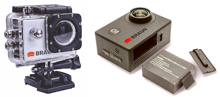 Die PAXI young ist in der Schweiz silberfarben erhältlich und wird mit reichlich Zubehör geliefert. Neben dem Unterwassergehäuse, das nicht nur vor dem feuchten Element, sondern auch vor Staub und Sand schützt, gehören ein Ladekabel, Lenkerhalterung, Helmbefestigung und Klebepads zum umfangreichen Zubehör. Das umfangreiche Zubehör der Braun PAXI young ist kompatibel zur GoPro Kamera, der Akku ist austauschbar.