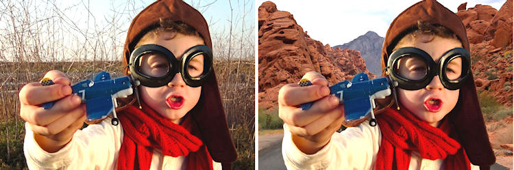 Hintergrundersatz: Einfaches Austauschen des Bildhintergrundes ohne Notwenigkeit einer Greenscreen-Technik. Hierbei wird einfach eine Tiefenebene ausgewählt und durch ein neues Bild ausgetauscht. Die Interaktivität eines Living Pictures bleibt dabei erhalten.
