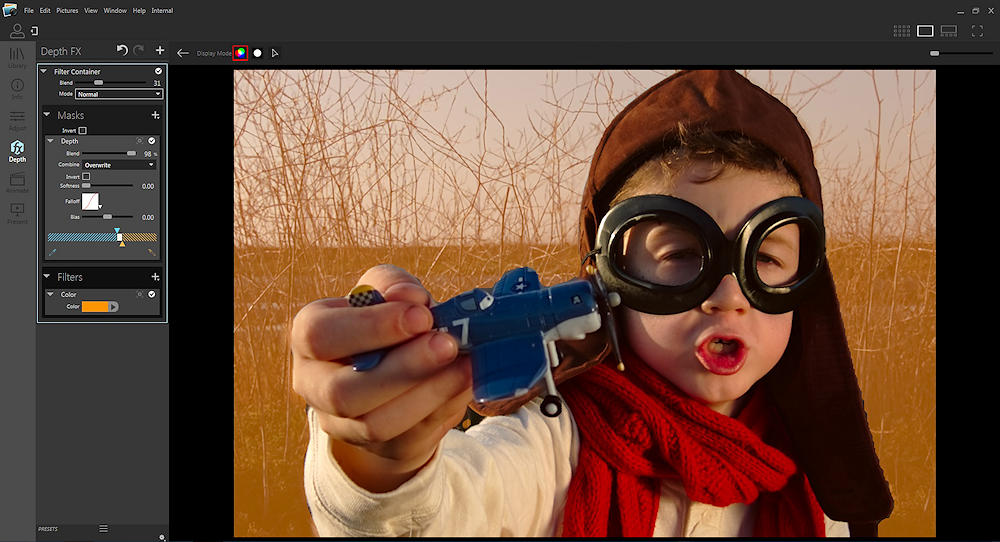 Tiefenbasierte Anpassungen: Basierend auf den im Z-Buffer enthaltenen Tiefeninformationen eines Living Picture können Bildbereiche freigestellt und bearbeitet werden. Die Bearbeitungsmöglichkeiten umfassen Belichtung, Sättigung, Farbe, Kontrast, Farbton und Färbung/Farbgebung.