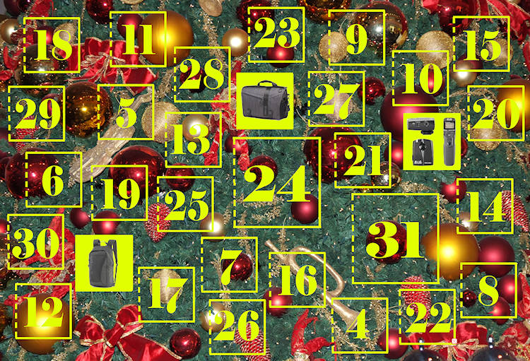 Mitmachen: So geht’sDie Wettbewerbsfrage: Wieviele Produktegruppen umfasst das Tenba-Sortiment der Firma GraphicArt? • Senden Sie Ihre Antwort bis heute Abend, spätestens 20:00 Uhr an • Bitte geben Sie Ihre Postadresse an, damit wir Ihnen, falls Sie gewinnen, den Artikel per Post zustellen können. Morgen um 07:00 Uhr geht das nächste Fensterchen am Fotointern-Neujahrskalender auf. Reinschauen nicht verpassen! Über den Wettbewerb kann keine Korrespondenz geführt werden. Die Barauszahlung des Gewinnwertes und der Rechtsweg sind ausgeschlossen. |