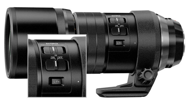 Auf der Oberseite des Objektivs befinden sich drei Schalter, die ohne den Blick vom Sucher abzuwenden und mit nur einem Finger bedient werden können. Auf der linken Seite lässt sich die L-Fn-Taste mit einer von 27 zuweisbaren Funktionen belegen. Daneben befindet sich der Ein-/Aus-Schalter für den Bildstabilisator des Objektivs (bei Verwendung eines Stativs). Die dritte Taste wechselt den Fokussierbereich. Auch das Potenzial für Nahaufnahmen ist mit einem Abbildungsmassstab von 1:0,48 und einem Abstand von nur 1,4 Metern zwischen Motiv und Kamera aussergewöhnlich.