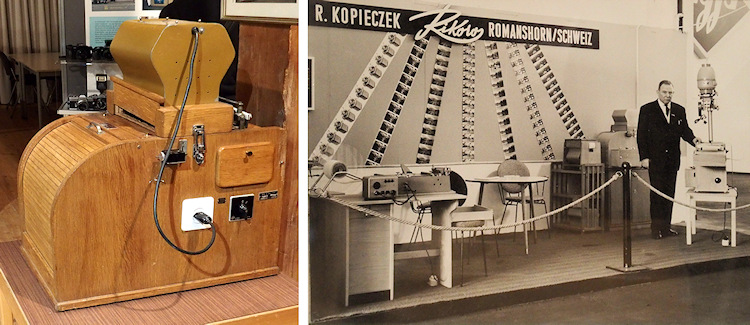 Um Postkarten rationeller herstellen zu können, konstruierten die Kopieczeks‘ das Belichtungsgerät «RiKoRo», das erstmals 1950 auf der Photokina in Köln gezeigt und danach in viele Länder exportiert wurde