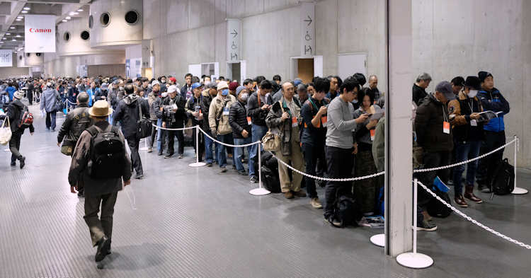 Kurz vor Zwölf: in wenige Minuten wird die siebente CP+ für das diszipliniert wartende Publikum geöffnet