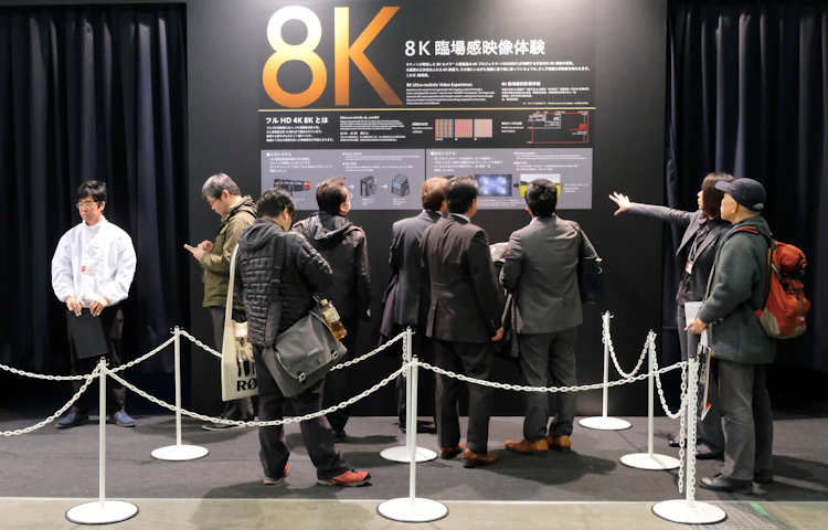 Wie schon auf der Canon Show in Paris (Fotointern berichtete) zeigt Canon ihre Lösung von 8K-Video mit der ganzen Lösungsreihe von der Kamera über den Monitor bis hin zur Projektion. Um diese Bildqualität zu erleben, stehen die Besucher hier gerne an. Canon will hier die Machbarkeit demonstrieren, denn mit der Realisierung von 8K soll erst in etwa vier Jahren zu rechnen sein.