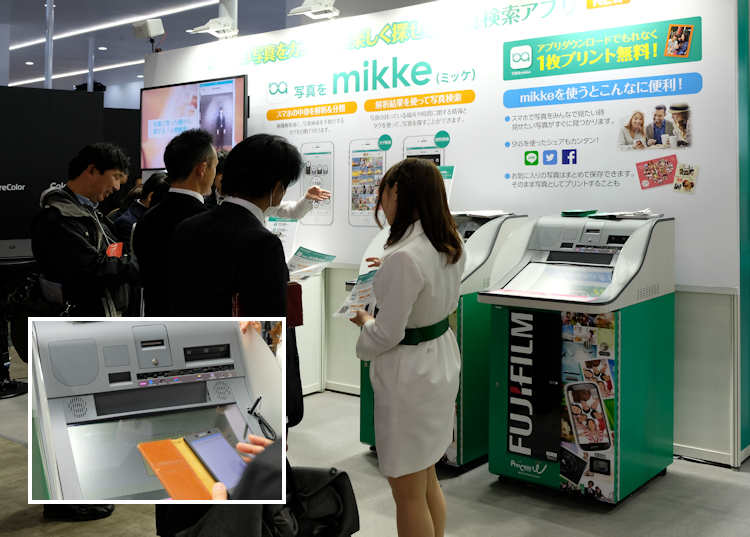 Auch am Fujifilm-Stand ist ein neuer Bilderkiosk zu sehen. «mikke», wie er in Japan und wahrscheinlich nicht in Europa heissen wird, ist in der Lage innerhalb kürzester Zeit Thermosublimations-Prints bis Grösse A4 auszudrucken, die einfach über eine App direkt vom Smarphone aus bestellt werden können.