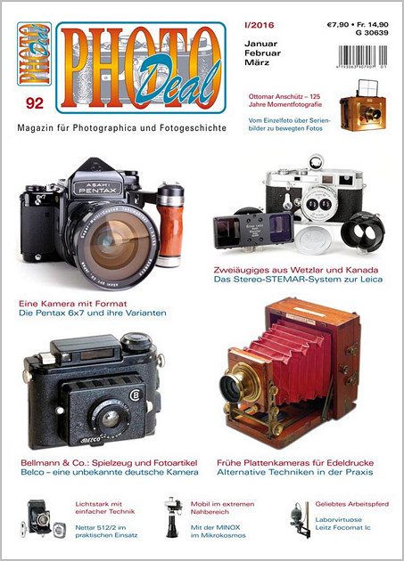 PHOTODeal, die Zeitschrift für Photographica und Fotohistorie, hat in ihrer Ausgabe IV/2015 eine erste Version dieses Artikels abgedruckt. Diese unterscheidet sich von dem hier publizierten Beitrag darin, dass der Autor hier weitere Recherchen veröffentlicht, die auch speziell den Schweizer Filmmarkt betreffen.