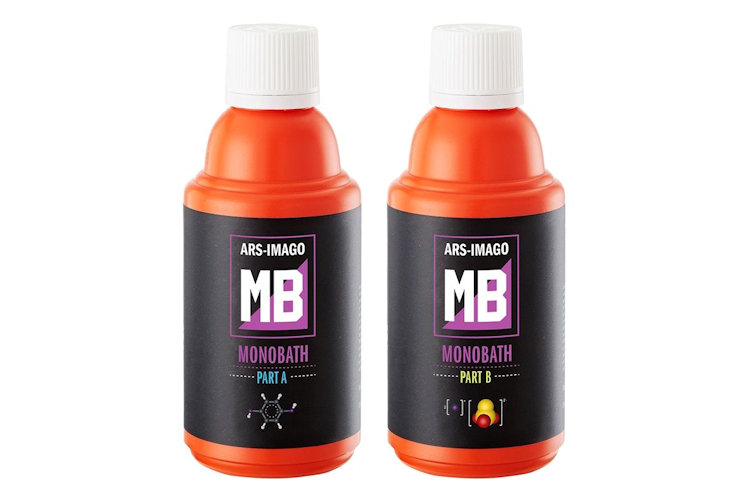 «Monobath» besteht aus Teilen, die in getrennten Flaschen geliefert werden. Durch das Mischen von Teil A mit Teil B ist die Chemie einsatzbereit und reicht zur Entwicklung von 8 bis10 Filmen pro Arbeitslösung innerhalb von fünf Tagen. Monobath kann auch für eine grössere Lösungsmenge mit einer 1:1 Verdünnung mit 2 Teilen Wasser, einem Teil A und einem Teil B verwendet werden. Dann verlängert sich die Entwicklungszeit um etwa zwei Minuten.