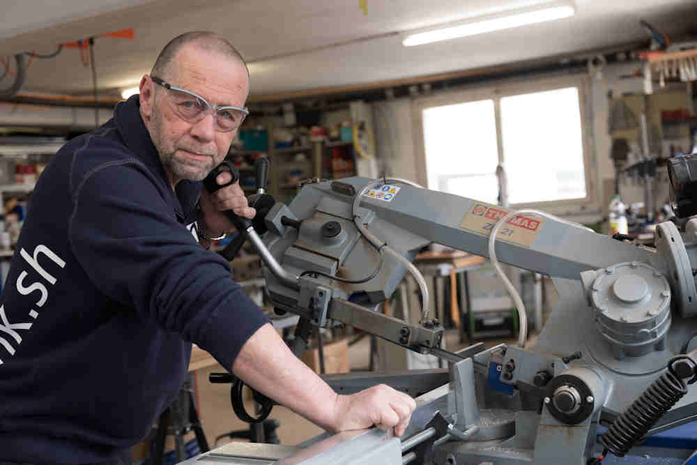 Die Firma VMK in Schaffhausen hat mir den Auftrag erteilt, von den Mitarbeitern Fotos zu machen. Jede Person soll an der Arbeit und im klassischen Porträtformat fotografiert werden. Ein perfekter Job, um die beiden Leica-Objektive gleich im normalen Arbeitsalltag zu testen. Ich greife aus der Fülle der Aufnahmen ein paar Beispiele heraus. Michael fotografiere ich an der Fräsmaschine mit dem 24–90mm Zoom. Ich positioniere ihn so, dass das Tageslicht sein Gesicht ausleuchtet: