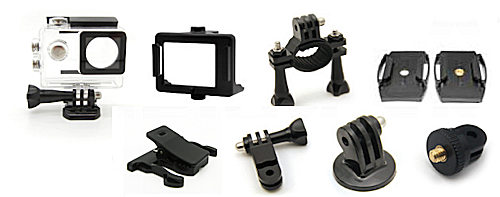 Umfangreiches Zubehör wie Halterungen für das Fahrrad und den Helm sowie Clip- und Winkel-Halterungen gehören ebenso zum Lieferumfang der GoXtreme Vision 4K Ultra HD wie das wasserdichte Gehäuse.