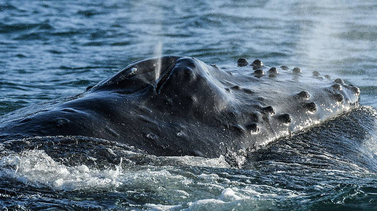 Eine Perspektive auf einen Buckelwal, wie ich sie selten sehe. Die See ist relativ ruhig, das Licht des späten Nachmittags sorgt für eine sehr schöne Modulation Nikon D500 mit AF-S Nikkor 80–400mm 1:4,5–5,6 VR auf 400 mm, 1/2000 Sek., f 8.0, 640 ISO, freihändig aus dem Schiff Crop auf 16:9 für die Integration in den Film