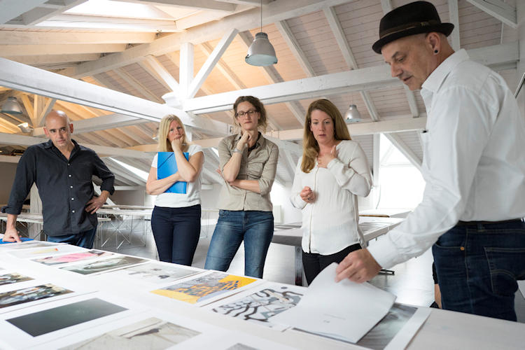 Eine internationale Jury, bestehend aus (auf dem Bild v.l.n.r) Jaakov Israel, Fotograf, Jerusalem; Nina Grundemark, Managing Director Grundemark Nilsson Gallery, Stockholm und Berlin; Dr. Gisela Parak, Leiterin Museum für Photographie Braunschweig; Sabine Bechtel, Fotoagentin, Zürich und Reto Camenisch, Fotograf und Studienleiter Redaktionelle Fotografie MAZ, Bern, fand sich im Foyer der Bildagentur Keystone Zürich zusammen. Sie nominierten in einem längeren Verfahren die folgenden zehn Finalistinnen und Finalisten (Reihenfolge alphabetisch) mit deren Arbeiten: