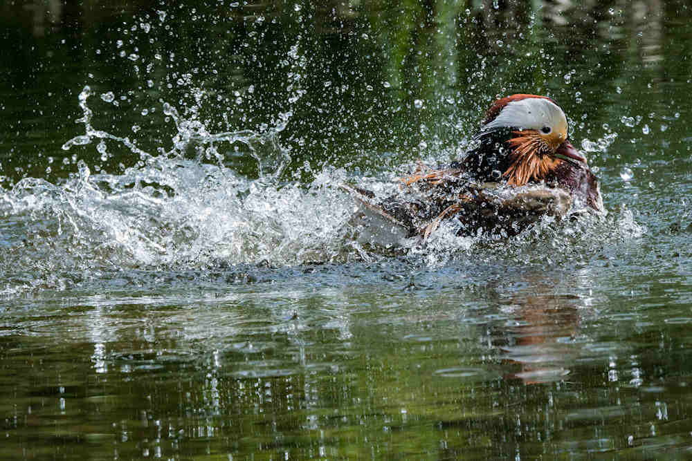 Mandarin-Ente, Zürcher Zoo. 300 mm, 1/1250 Sek., f 11, ISO 800. Hier kommt die Geschwindigkeit der D500 richtig zum Tragen.
