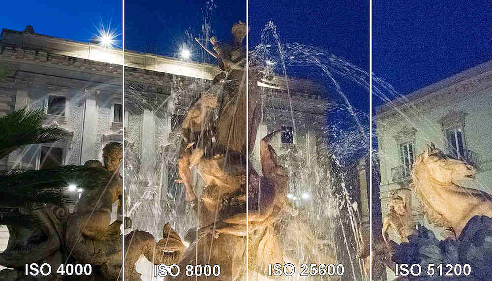 Heutige Kameras verarbeiten ungefähr bis ISO 800 ohne Bildrauschen. Bei niedriger ISO-Zahl wird allerdings eine bessere Schärfe abgelichtet. ISO hat also auch mit Schärfeleistung zu tun und nicht nur mit Bildrauschen. Eine ISO-Stufe höher zu belichten, bedeutet die Blende eine Stufe zu schliessen oder die Belichtungszeit eine Stufe zu verkürzen. Wer also ohne Stativ unterwegs ist, gewinnt durch die Erhöhung des ISO-Wertes eine kürzere Belichtungszeit, was weniger Verwackelungsgefahr mit sich bringt. Ein auf diese Art verwackeltes Bild ist unbrauchbar, ein scharfes Bild mit etwas mehr Körnung ist absolut brauchbar. Bildrauschen tritt vor allem in mittleren bis dunkleren Bildpartien auf. In den hellen Bereichen ist wenig davon auszumachen.