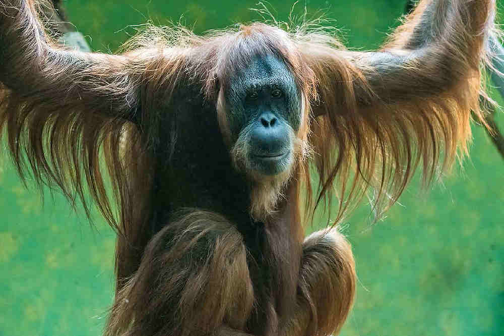 Ein Orang-Utan im Zürcher Zoo. 135 mm, 1/1250 Sek., f 5, ISO 2000.
