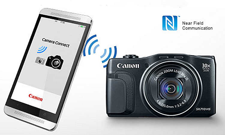 … oder die Kamera ist mit einer Near Field-Funktion (NFC) ausgestattet. Dann werden beiden Geräte zur Verbindung kurz aneinandergehalten. (Foto: Canon)