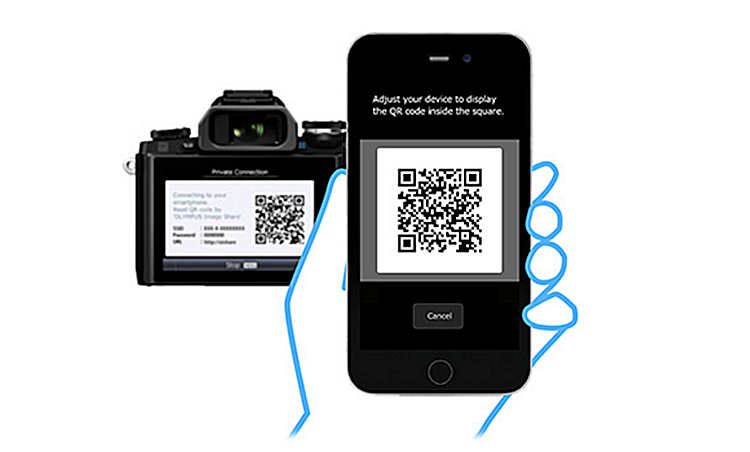 Bei gewissen Modellen erfolgt die Verbindung blitzschnell mit einem QR-Code … (Foto: Olympus)
