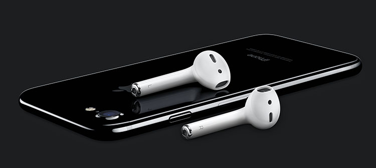 Optional gibt es die AirPods, wie Apple ihre jetzt neu eingeführen, kabellosen Kopfhörer nennt. Sie sollen Einfachheit und Technologie verknüpfen. Dank des neuen Apple W1 Chip bieten AirPods effiziente, drahtlose Kommunikation für bessere Verbindung, besseren Klang und die längste Batterielaufzeit. Die AirPods erschliessen dem Nutzer die Leistungsfähigkeit von Siri und ermöglichen mittels einfachen Doppeltipps den Zugriff auf den beliebtesten persönlichen Assistenten.