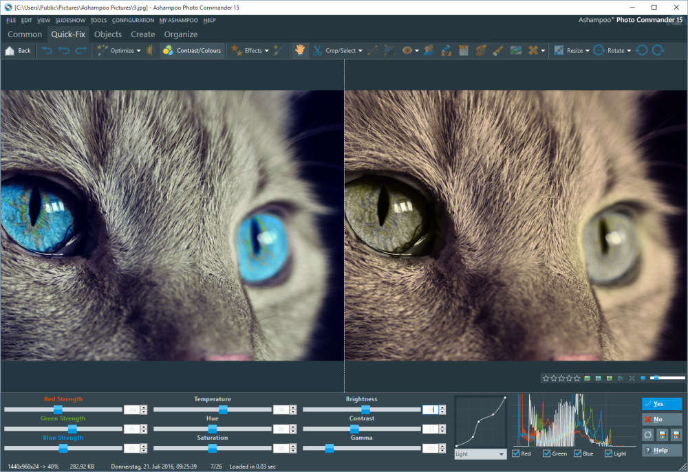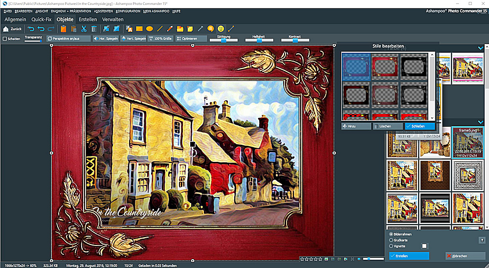 PhotoCommander 15 ist eine sehr gute Option, um Fotos zu bearbeiten. Das tool hat viele Filter und Effekte und ist wirklich geeignet für Erstelllung von Karten und Rahmen.