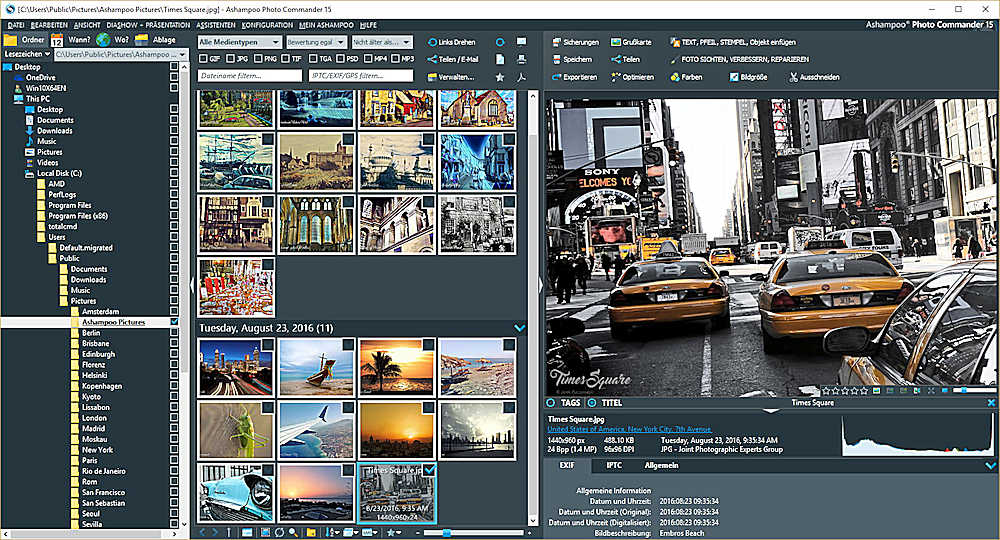 Der neue Ashampoo Photo Commander 15 ist eine Komplettlösung zum Betrachten, Bearbeiten und Organisieren von Fotos. Bringen Sie neue Ordnung in Ihre Sammlung, lassen Sie beliebig viele Bilder gleichzeitig optimieren oder gestalten Sie Kalender, Karten und ganze Diashows im Handumdrehen.