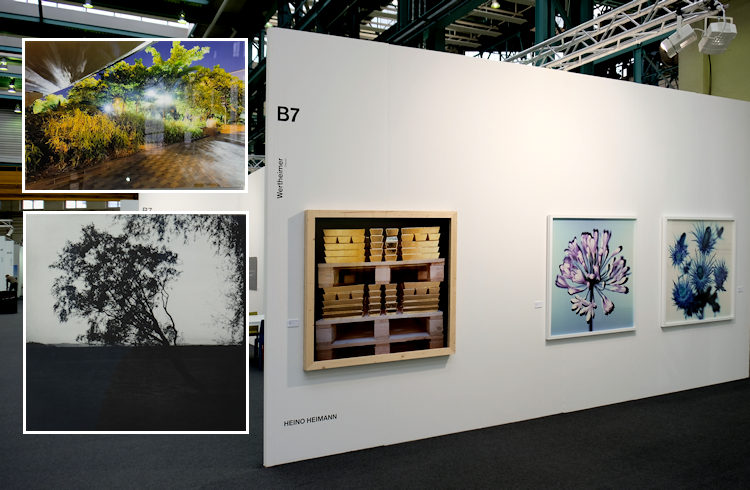 Stärker für Fotografie engagiert und grösser als letztes Jahr, stellt die Galerie Monika Wertheimer aus Oberwil aus, die seit Jahren Fotografie als ihre Spezialgebiet sieht und vor allem auch junge und weniger bekannte Künstler fördert. Sie tritt dieses Jahr mit einem mehr als doppelt so grossen Stand auf und präsentiert als Schwerpunkt Heino Heimann mit den bekannten Ilfochrome-Direktbildern, dann aber auch Farbkreationen von Nicolas Henri und eine hervorragende Schwarzweissreihe von Emanuel Strässle.