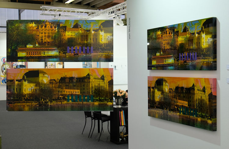 Helle Jetzig, der von der Galerie Barbara von Stechow aus Frankfurt am Main präsentiert wird, ist auf Städtebilder spezialisiert, die von einer Fotografie ausgehend in einem langen Prozess mehrfach übermalt und lackiert werden. Damit erscheinen die Bilder in einem kraftvolleren, abstrakten Farbcharakter. Highlight am Stand sind die beiden Bilder der Stadt Zürich am Stand, doch hat Helle Jetzig unzählige andere Städte, wie New York, Hamburg, Istanbul oder London in gleicher Manier dargestellt.