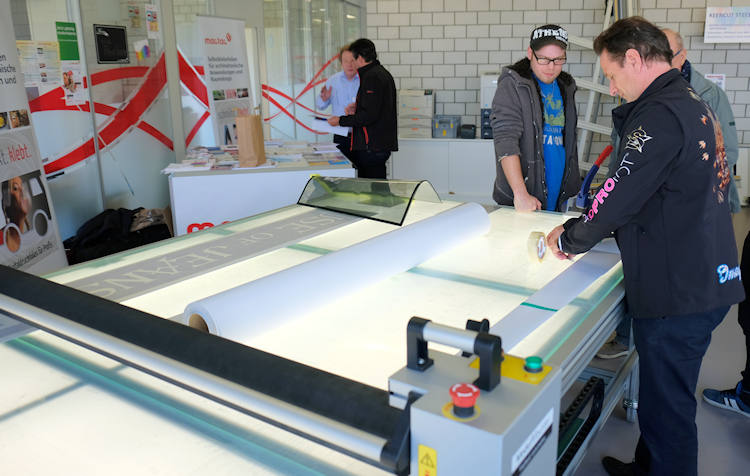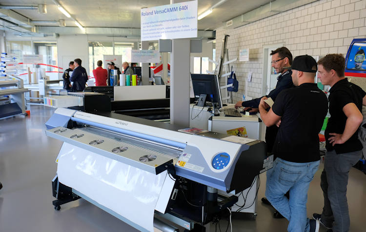 Nicht nur im Fotobereich, sondern vor allem in der Werbetechnik wird grossformatig gedruckt. Dieser Roland Grossformatdrucker ist zugleich auch ein Schneideplotter