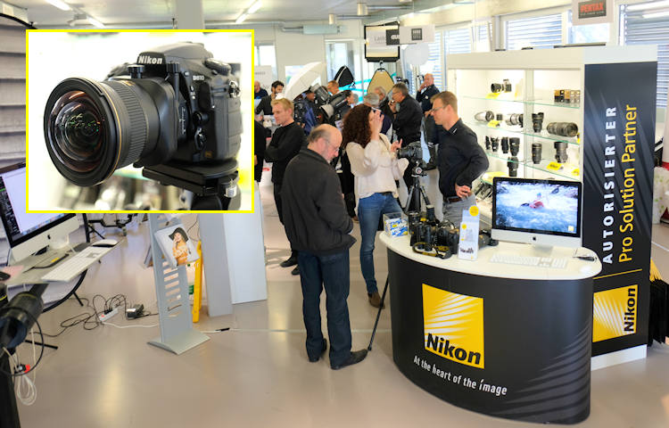 Am Nikon Stand gibt es ein paar neue Objektive, zum Beispiel das vollformatige Superweitwinkel PC-Nikkor 1:4/19mm E ED, das kaum Vezeichnung aufweist. Durcschauen lohnt sich …