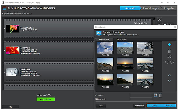 Filme im Burning Studio zu erstellen und zu brennen, war schon immer die Parade-Disziplin des Programms. Mit der Version 18 werden nun auch die beliebten Formate MPEG4, H.264 und AAC unterstützt. Verbunden mit erstklassigen neuen Bildübergängen und Soundeffekten vergrössern sich Ihre Möglichkeiten, Filme genau nach Ihren Wünschen zu gestalten.