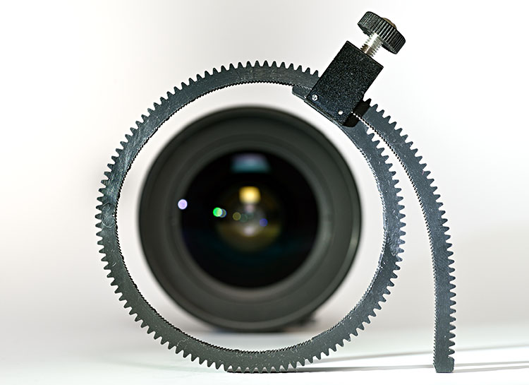 Manuelles Fokussieren ist beim Filmen in verschiedenen Fällen – wie beispielsweise beim kreativen Spiel mit der Schärfentiefe – angesagt. Um normale Fotoobjektive temporär mit einem Zahnkranz bzw. Zahnriemen aufzurüsten, lassen sich flexible Zahnkränze aus Plastik zum Überstülpen verwenden.