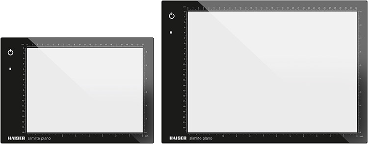 Die Kaiser slimlite plano sind in zwei Grössen lieferbar: 22 x 16 cm (2453) und 32 x 22,8 cm (2454)