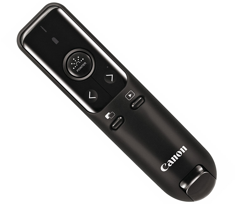 Der Canon PR500-R verfügt über einen einsteckbaren USB-Dongle und kann so schnell an PCs und Macs angebunden werden. Er bietet native Unterstützung von Microsoft PowerPoint, Mac Keynote und Adobe Reader. Die Steuerungsmöglichkeiten umfassen das Vor- und Zurückblättern, das Starten und Beenden einer Diashow und die Bildausblendung. Der Presenter lässt sich dabei aus einer Entfernung von bis zu 20 Metern bedienen.