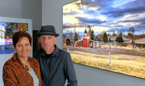 Regula und Christian Heeb in der Glaswerkstatt Freiburg. Sie sind von der Qualität der hinterleuchteten Glasdrucke begeistert