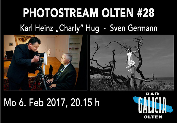 Heute, Montag 6. Februar 2017 um 20.15 Uhr findet in der Galicia Musik Bar Olten wieder der allmonatliche Photostream statt. Die beiden bekannten Fotografen Karl-Heinz Hug und Sven Germann zeigen Einblicke in ihr äusserst interessantes Schaffen auf der Leinwand der Galicia Musik Bar und kommentieren sie live. Zudem ist der Photosteam immer ein sehr gelungener Begegnungsevent.