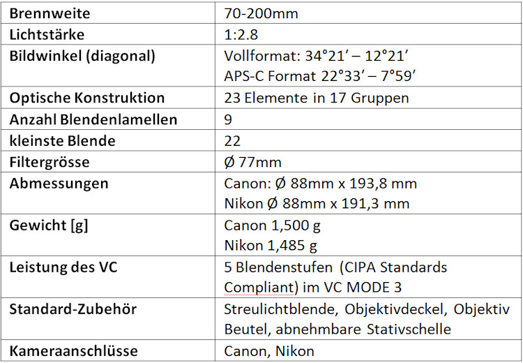 Die Bildstabilisierung soll laut Tamron eine Kompensation von fünf Blendenstufen ermglichen. Der VC-Mechanismus bietet zudem drei unterschiedliche Modi, mit denen sich die Kompensation passend zum jeweiligen Motiv anpassen lässt. Im Vergleich zum Vorgängermodell arbeitet der USD-Autofokus des SP 70-200mm G2 schneller und noch präziser. Zwei neue Mikrochips und ein verbesserter AF-Algorithmus sorgen für diese Leistungssteigerung im Vergleich zum Vorgängermodell.