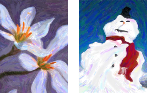 Akvis Pastel 3 Bildbeispiele für die neue Funktion «Abstrake Kunst». Damit lassen sich in Pastelle umgewandelte Fotos allerdings einfach nur zusätzlich verformen.