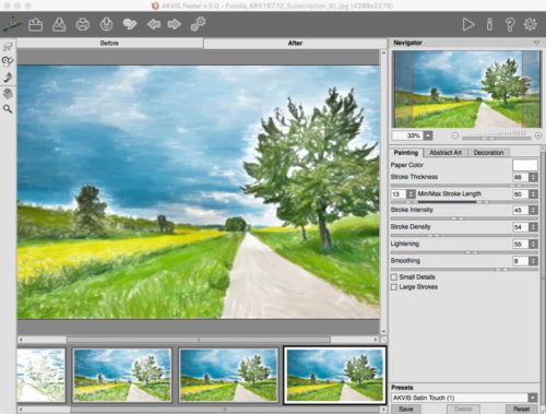 Während manche Software-Hersteller viele Bildeffekte in ihre Programme packen, verkauft Akvis Effekte in spezifischen Portionen und verpasst diesen alle paar Monate eine kleine Aktualisierung. Unter ihren etlichen Bild-in-Gemälde-Effekten hat Akvis das für Mac und Windows verfügbare «Pastel», das Fotos in Pastelle umwandelt, auf Version 3 upgedatet. Neu ist die Funktion «Abstrakte Kunst», die Bilder allerdings lediglich zusätzlich verformen (Warping) kann.