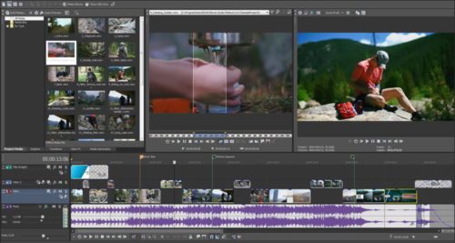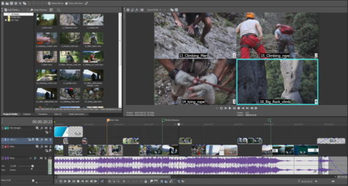 Screenshot der Benutzeroberfläche von Vegas Movie Studio: Neu in Version 14 ist die Multicam-Unterstützung.