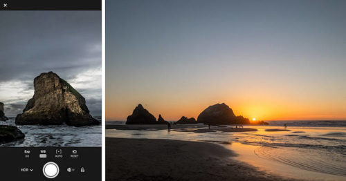 Neuer RAW-HDR-Aufnahmemodus. Der neue HDR-Modus scannt automatisch die Szenerie um den korrekten Belichtungsbereich zu ermitteln und nimmt anschließend drei DNG-Dateien auf, welche dann automatisch innerhalb der App ausgerichtet, zusammengeführt, de-gosthed und per Tonemapping aufeinander abgestimmt werden.