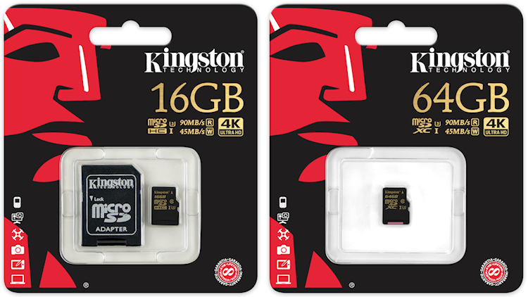 Die Kingston microSD UHS-I U3 Goldserie ist mit 16GB, 32GB und 64GB Speicherkapazität mit oder ohne Adapter erhältlich.