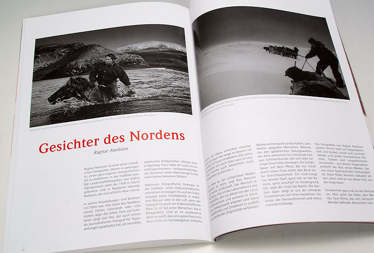 Den hinteren Heftteil nochmals mit einer starken Bildgeschichte aufzuwerten, ist ein bewährtes Rezept von Blattmachern. «Gesichter des Nordens» von Ragnar Axelsson ist ein solches Portfolio, beziehungsweise eine Buchbesprechung, in der man gerne noch mehr Bilder gesehen hätte. Das trifft übrigens auch für den originellen Artikel «Fika in Stockholm» von Ulrike Mayrhuber zu, bei dem es um eine Kaffeebecher-Lochkamera geht – und was man damit an originellen Umsetzungen in Kaffeetassen machen kann.