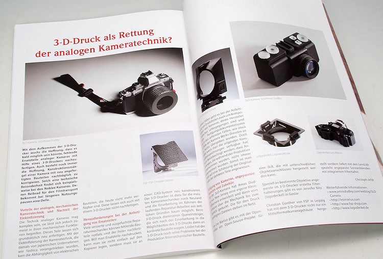 Ob dereinst «3D-Drucker als Rettung der analogen Kameratechnik» in Frage kommen, ist eine spannende Frage, der ebenfalls Christoph Jehle nachgeht. Tatsächlich gibt es schon verschiedene Webseiten, die sich mit diesem zukunftsträchtigen Thema auseinandersetzen.