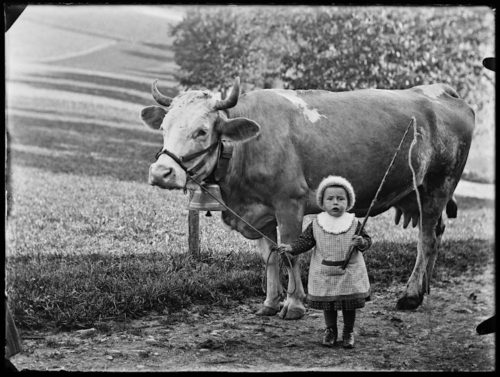 Auch der feine Humor des Fotografen offenbart sich in vielen gelungenen Bildern. Allen voran wäre da diese reizende Fotografie mit dem kleinen Mädchen als Viehhüterin und der Kuh zu erwähnen. Allein die Grössenverhältnisse lassen die Inszenierung «Kleine Kuhhirtin» als wenig glaubhaft erscheinen. Wer könnte sich ob solch gelungener Situationskomik ein Schmunzeln verkneifen?