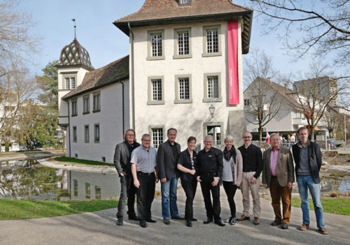 Der neue Vorstand der Imagingswiss vor dem Schloss Bümpliz (v.l.n.r): Rolf Sutter, Robert Fischlin, Beat Stapfer, Lisbeth Grimm, Alex Mächler, Erika Hüss, Björn Walter, Marco Garbani, Yves Burdet