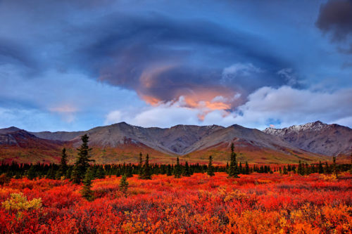 Die Landschaft ist so grandios wie vielfältig. Im arktischen Norden leben Eisbären und Moschusochsen in einer baumlosen, windumtosten eiskalten Tundra, im Prince William Sund im zentralen Süden kalben unzählige majestätische Gletscher ins Meer, im Südwesten ragen riesige aktive Vulkane in den Himmel und im milden Südosten gedeihen die letzten kalten Regenwälder der Erde.