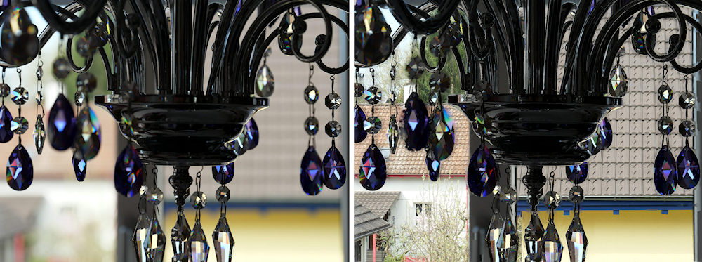 Fokusstacking. Beide Bilder sind mit Blende 5.6 realisiert worden. Allerdings ist das linke Foto ein «single shot», d.h. eine einzige Aufnahme, währenddem das rechte Bild aus 30 Aufnahmen mit verschiedenen Fokuspunkten in der Kamera zusammengesetzt worden ist. Durch das Focusstacking lassen sich auch unmögliche Schärferäume realisieren. Das geht in der GH5 mit 18 Megapixeln und nur in JPG-Qualität. Doch für die meisten Anwendungsbereiche ist das ausreichend.