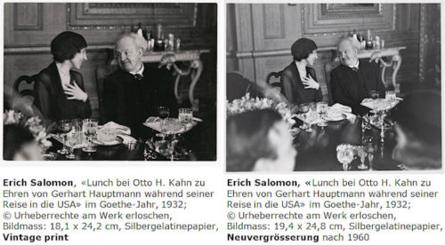 Die Sektion «Kunst, Markt und Recht» der Deutschen Gesellschaft für Photographie (DGPh) führt am 24. Juni 2017 in der Berlinischen Galerie eine Tagung mit dem Titel «Vintage – Ein Begriff macht Fotografie-Geschichte» durch. Durch Neuvergrösserungen und digitale Bearbeitung werden originale Bilder verändert – verbessert oder verschlechtert? Inwieweit ist dies zulässig? Dies ist das Thema dieser Tagung.