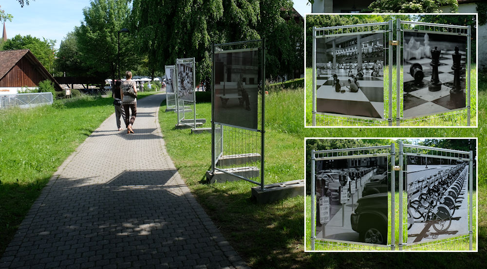 Augenfällig und schon fast Markenzeichen für die Photo Münsingen ist die Ausstellung auf dem Schlossgutplatz mit den typischen Photo-Münsinger-Regenschirmen, welche die ausgestellten Bilder vor Sonne und Regen schützen. Hier zeigt Remo Neuhaus seine «Motorheads» – Porträts von besonderen Autobesitzern und ebenso auffälligen Autos. Die Bilder erzählen die Geschichte dahinter. (Auf dem Schlossgutplatz [2])